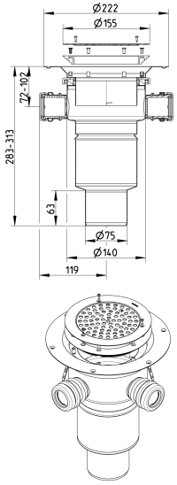 Afløbsretning:Lodret udløb med sideindløb