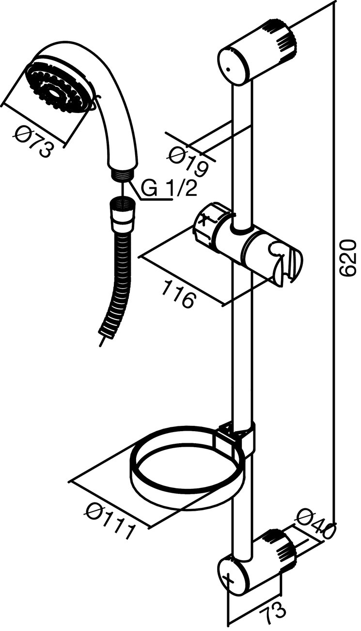 3 indstillingsmuligheder på hådbruser. Rub-Clean.