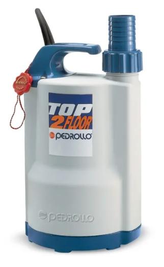 Pedrollo Top2 floor drænvandspumpe der tillader passage af partikler op til 5 mm. Kun til rent vand. Velegnet til brug ved tømning af svømmebassiner, kælder, flade tage og lign.. Suger ned til 2 mm. 1" afgangsstuds/slangestuds + 1 1/4 slangestuds. Hus i slagfast plast. Aksel, skruer m.m. i AISI 416. Mekanisk akseltætning. 5 m kabel med godkendt slagfast stik (jordben).
