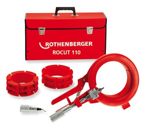 Rothenberger ROCUT 110 mm. Centreret fastspænding af rør. Afgrater i håndtag. Leveres i kuffert med 50 og 75 mm reduktionsbakker samt afgrater.