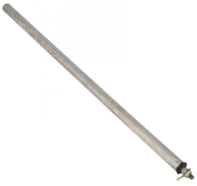 Stavanode med M8-gevind leveres med møtrik, isoleringsskive og loddeflig. Stavanoden anvendes oftest til varmtvandsbeholdere. Anoden bruges i hhv. 60 l, 110 l og 160 l varmtvandsbeholdere. Længde: 553 mm Ø26 mm Vægt: 510 g