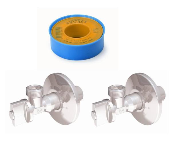 2 stk. Stopventil til væggen i ½ x 3/8" (vandtilslutningen kan foretages med flexrør med 3/8" omløber) |