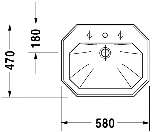 Duravit 1930 58 håndvask t/nedfældning - 1/3 hanehuller Duravit 1930 giver dig mulighed for at indrette et badeværelse med komplet vintage stil. Den ottekantede form går igennem hele serien og er smuk med sit særpræg.