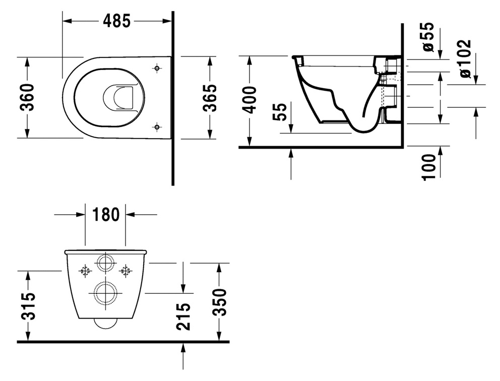 Man kan fint bruge dette væghængte toilet på en eksisterende indbygningscisterne. Man skal blot sikre, at boltafstanden (se måltegning) er den samme som på den skål der er monteret i forvejen.