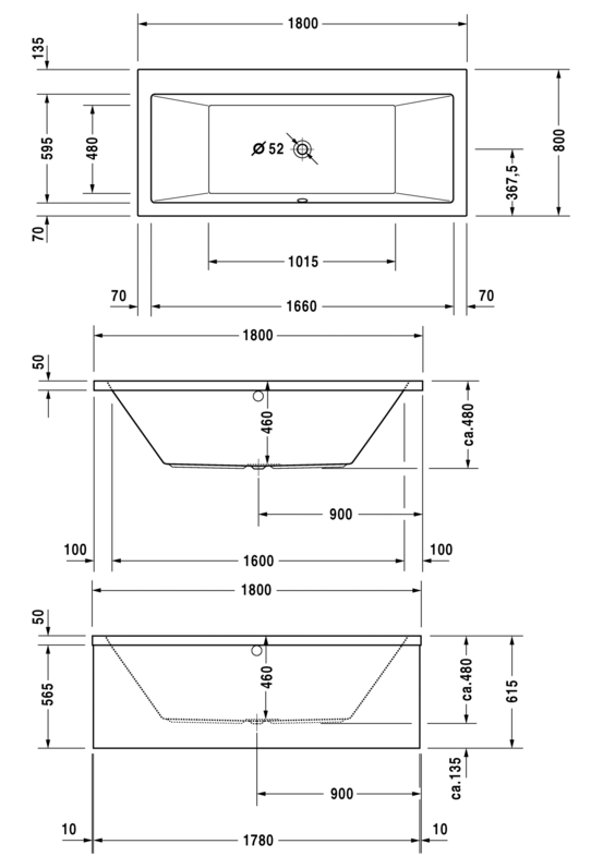 Duravit Vero rektangulært badekar 1800x800 - 2 Ryglæn Vero Badekar rektangulært, Indbygningsversion eller til badekarpanel, med to ryglæn, 5 mm sanitærakryl, Design by Duravit Husk at købe ben, befæstigelse og overløbssæt. |