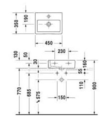 Duravit Vero 45 bowlevask op til væg - 1 hanehul