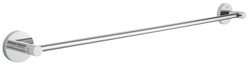 Grohe Essentials håndklædestang - 600 mm - Krom Håndklædestangen er uundværlig på både badeværelse og gæstetoilet. Den sørger for at du både kan have dine håndklæder hængende til tørre og at du kan have håndklæder hængende pænt foldet, klar til brug. Designet er super enkelt, ligesom alt andet badeværelsestilbehør fra Grohe Essentials. De runde rosetter går igen og bliver her kombineret med selve stangen til håndklæder. Håndklædestangen har fået Grohe Long-Life Shine-krombelægning, hvilket giver en flot, blank overflade, men også sikrer en slidstærk overflade og et flot produkt i mange år. Specifikationer: