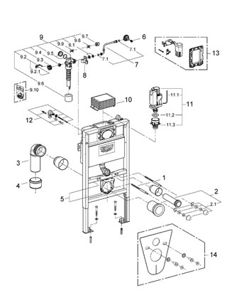 Indbygningscisternen leveres komplet med afløbsbøjning, fremføringshylster, ferulesæt og monteringsbolte. kort sagt alt hvad du skal bruge til cisternen. Det eneste du skal tilkøbe er en betjeningsplade. Alle de Grohe betjeningsplader – og knapper der passer til denne model finder du under relaterede varer. Her finder du også de mest populære hængeskåle.