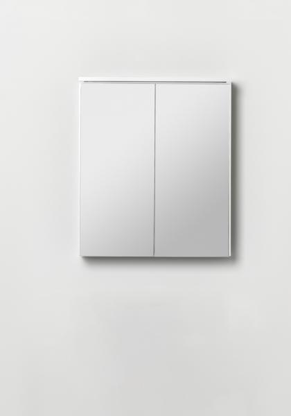 Hafa Edge 600 spejlskab - Hvid mat Spejlskab med dobbeltsidede spejldøre med dæmpet lukkefunktion. Integreret LED-belysning, som lyser ned over spejlet, samt underbelysning, som lyser ned mod vaskekummen. Varmt hvidt lys, som ikke kan dæmpes. 230 V-udtag i højre side af skabet. Flytbare glashylder, som er sikkert fastgjort af hyldebærerne. Magnetholder til småting, f.eks. pincetter, inde i skabet, og forstørrelsesspejl på indersiden af spejldøren. Justerbare ophængsbeslag, som gør monteringen enkel. Korpusset er færdigmonteret.