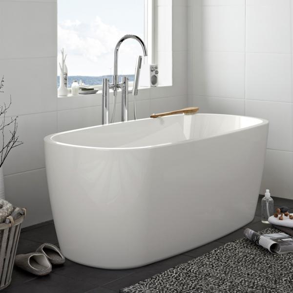 Fritstående designbadekar med bløde, runde former. I ekstra stabil, farvebestandig sanitetsakryl. Overfladen har ingen samlinger, hvilket gør karret nemt at rengøre. Justerbare fødder. Badedybde 460 mm.