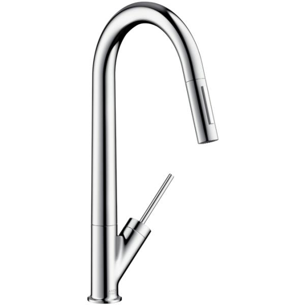AXOR Starck badarmaturer er kompromisløse og uden unødig pynt. Det karakteristiske joystick-greb findes i to varianter til håndvaskarmaturerne – som klassisk fjergreb og som moderne pin-greb.