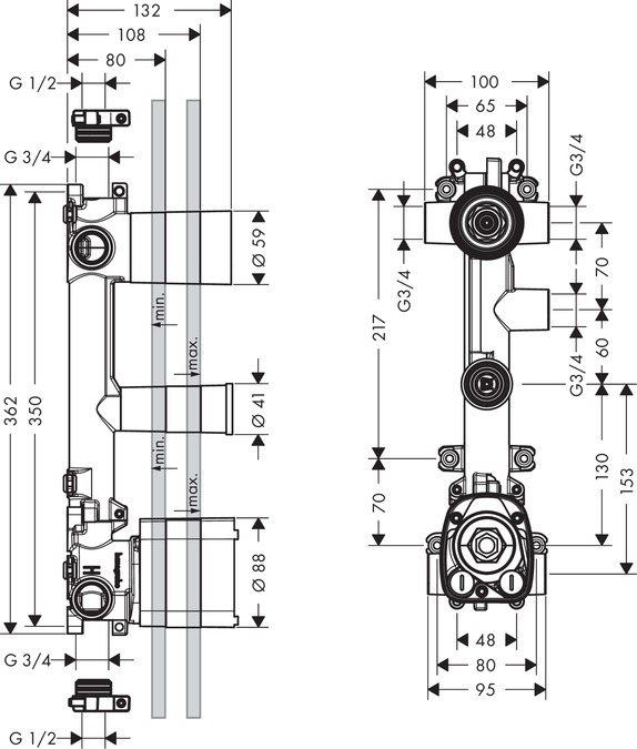 • montering: fungerer samtidig i direkte forbindelse som vandføring hhv. montering med præcise mål