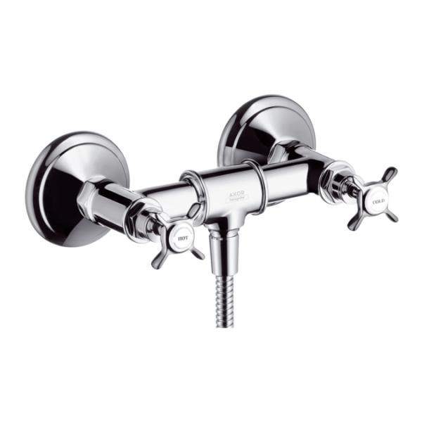 Hansgrohe Axor Montreux 2-grebs brusebatteri. Med forskruninger og rosetter.