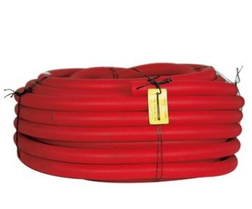 Hekaplast rød, indvendig glat og udvendig korrugeret PEH-rør, anvendes som trækrør til kabler primært nedgravet i jord. Leveres med træksnor og muffe.
