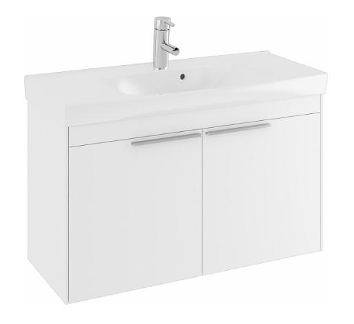 Komplet møbelpakke med smallere underskab, hvid. To softclose lukkende låger og Ifö Spira håndvask. Inklusiv hylde, forberedt for VVS-installation uden extra udskæring. Lige greb i aluminium indgår samt pushopen indsats. Vandlås og blandingsbatteri indgår ikke.