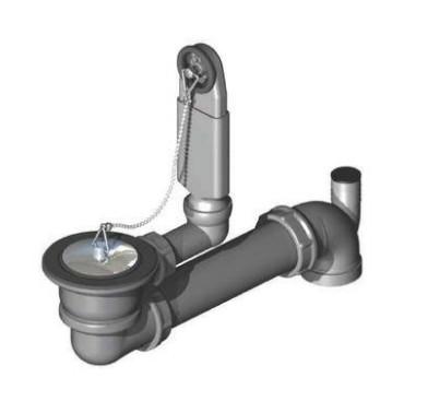 Prop/kæde komplet til enkeltvask. Med tilbagetrukket afløb. Inkl. Overløb.