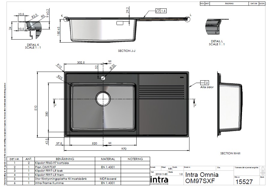 Intra Omnia 97SXLF køkkenvask - Venstre