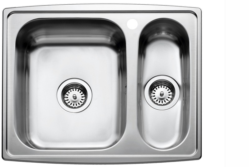 Køkkenvask med stor vask til venstre og lille kumme. Til nedfældning. |
