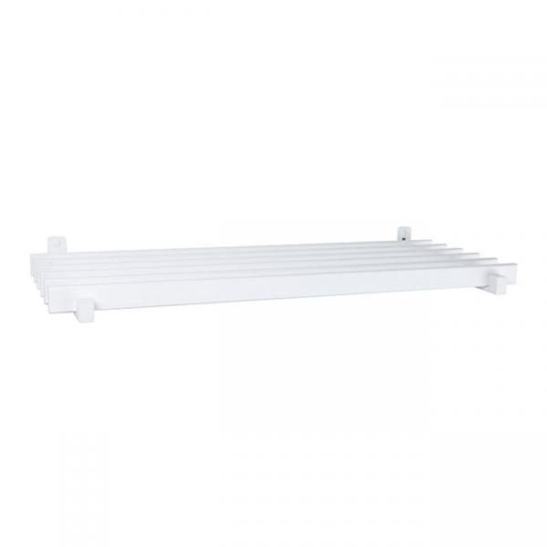 Lastein Norline 76 skohylde/hylde - Hvid/hvid Solid og elegant hylde i nordisk design: Brug den til fodtøj, til huer og handsker eller noget helt tredje. Hylden er produceret i massivt træ og stål, som begge er meget holdbare materialer i en kvalitet som er nem at gøre rent - hvilket er særligt praktisk, hvis hylden anvendes til fodtøj. Med sit enkle design og rene linjer er det nemt at tilføje denne hylde til indretningen og få glæde af dens funktion. Specifikationer: