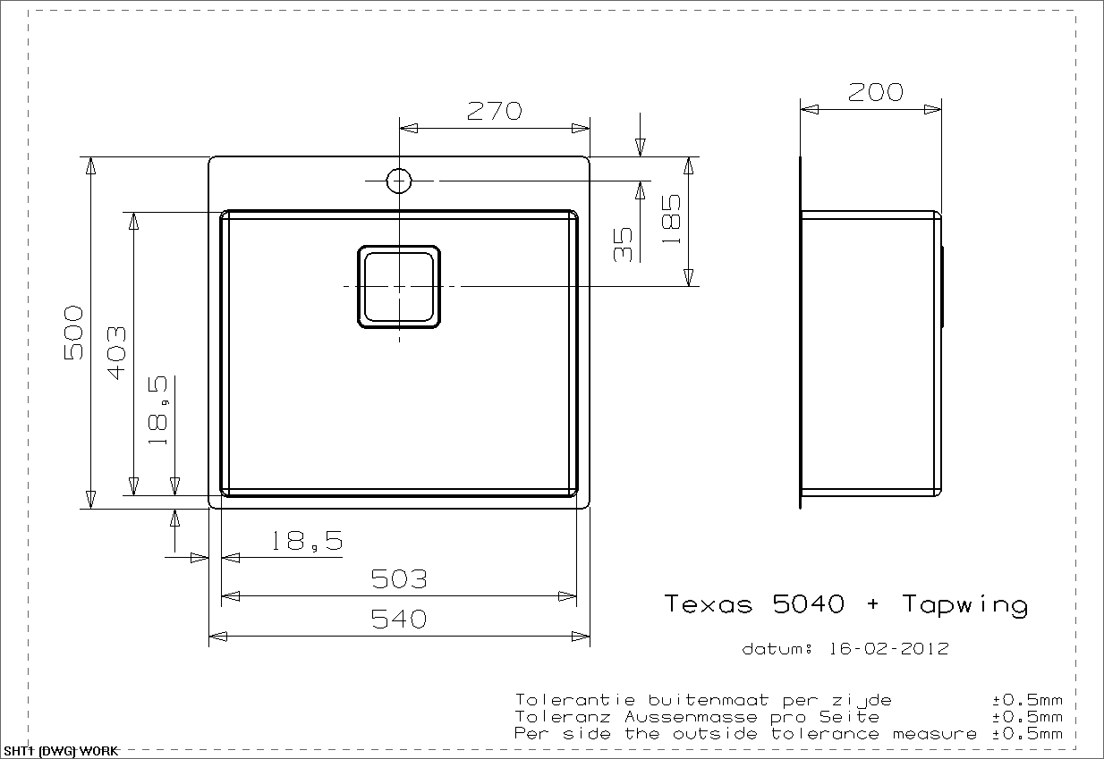 Lavabo Texas 50x40 køkkenvask med hanehul