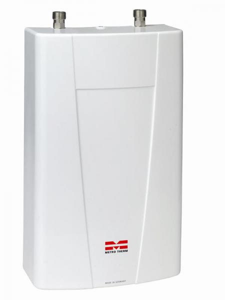 Tilsluttes 3x400volt og yder 11 kW. Sikres med 3x16A sikringer. Velegnet til håndvask med eksisterende trykarmatur. Vandvarmeren skal monteres med rør op.