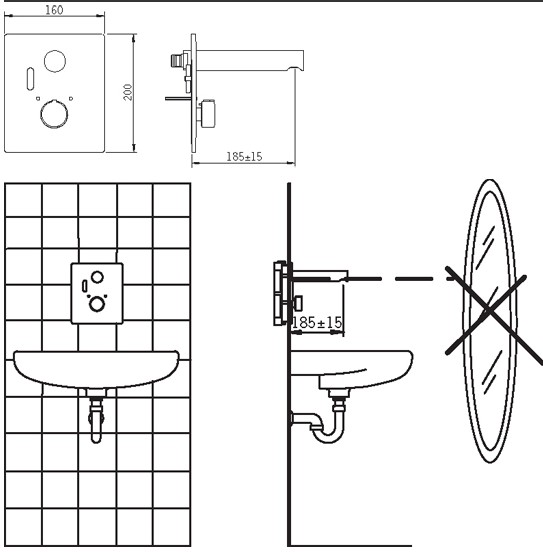 Oras berøringsfrit indbygningsarmatur til håndvask. Batteridrevet 6 V (2CR5)