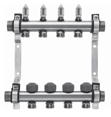Roth gulvvarme fordelerrør m/4 afg. m/flowmåler