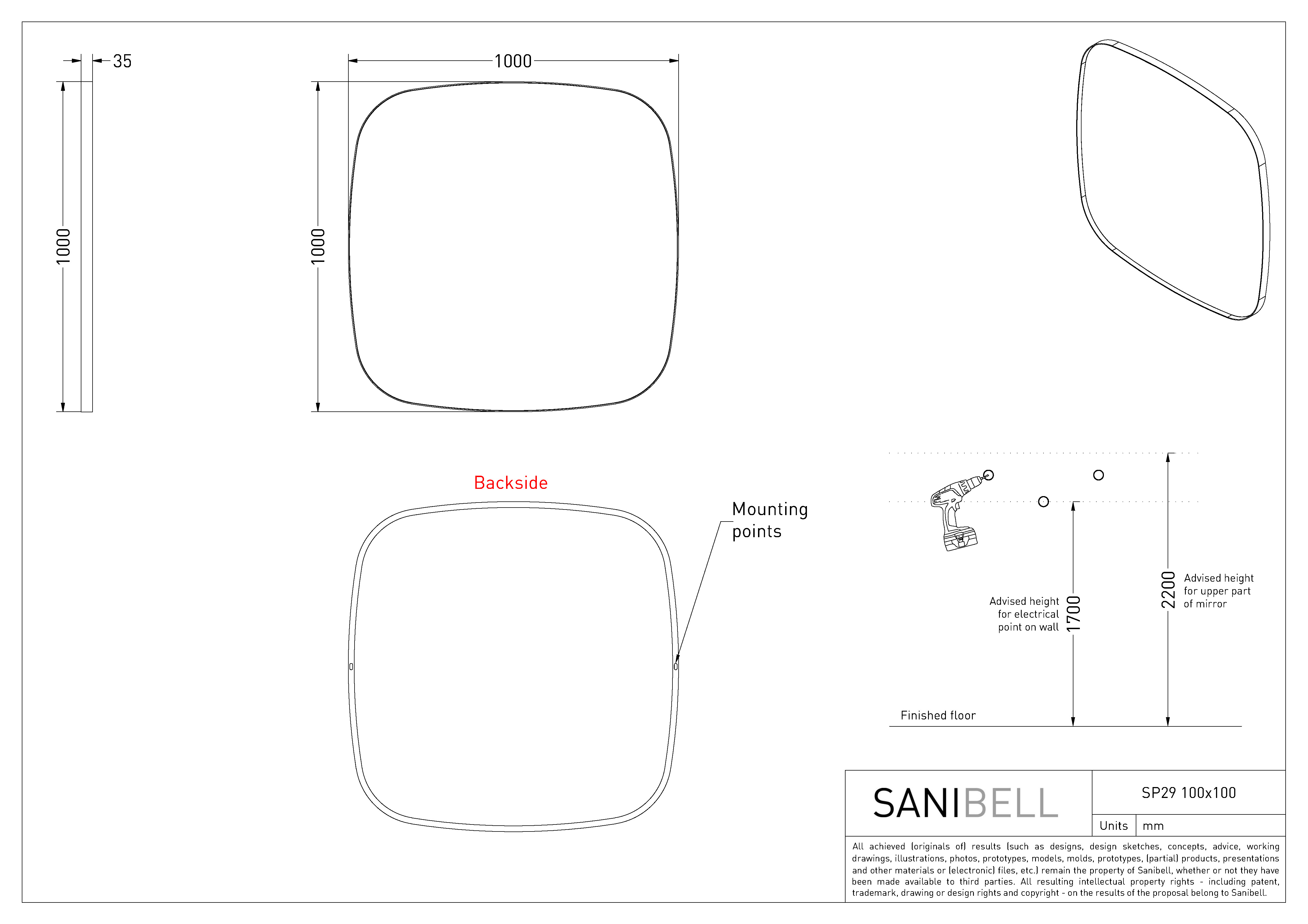 Sanibell Ink SP29 superellipse spejl m/ramme 100 x 100 cm - Børstet kobber