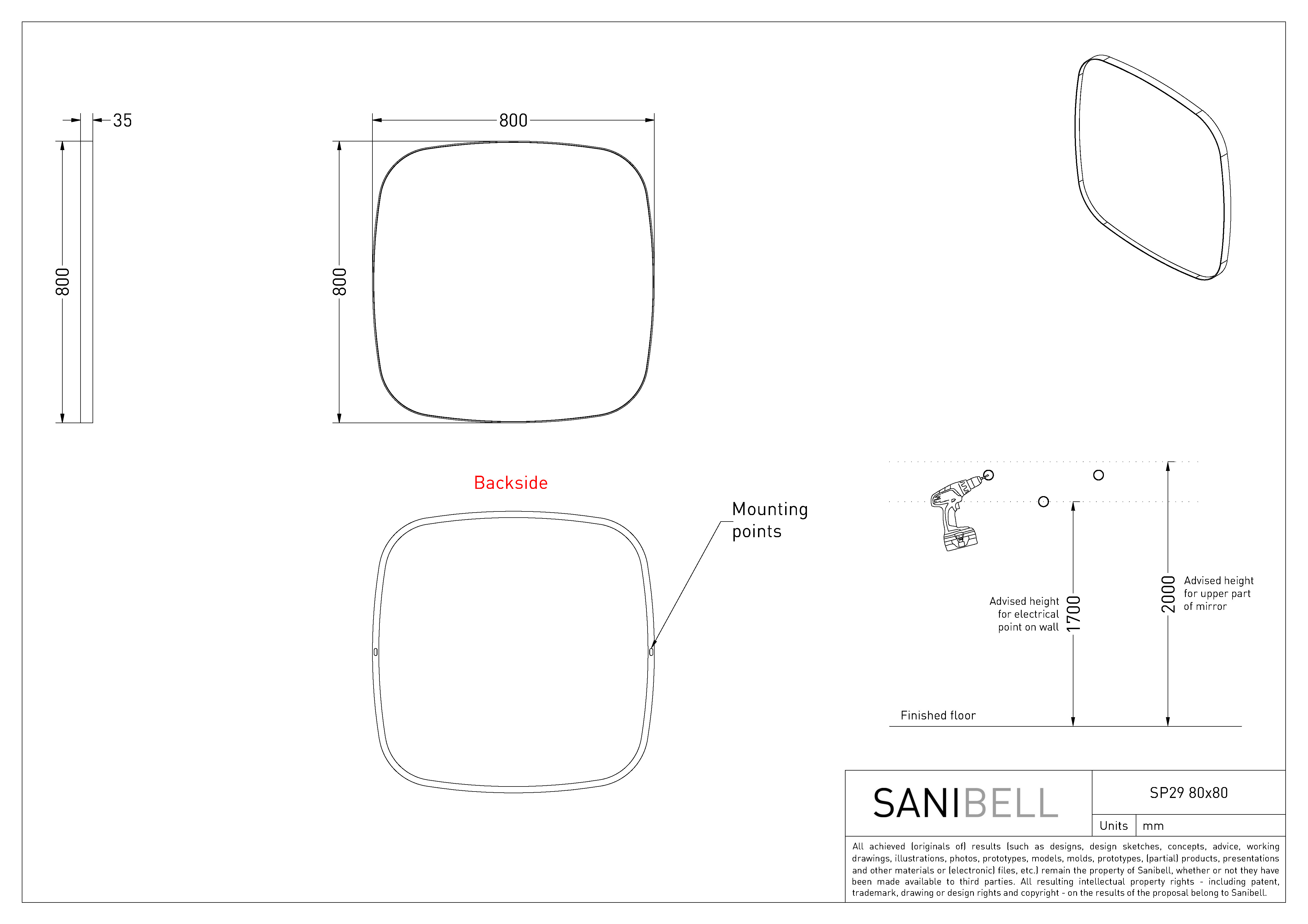 Sanibell Ink SP29 superellipse spejl m/ramme 80 x 80 cm - Børstet rustfrit stål