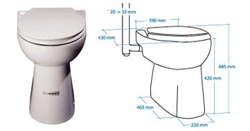 Tryk på skylleknap aktiverer den støjdæmpede motor som bortpumper restproduktet ad et 32 mm afløbsrør.