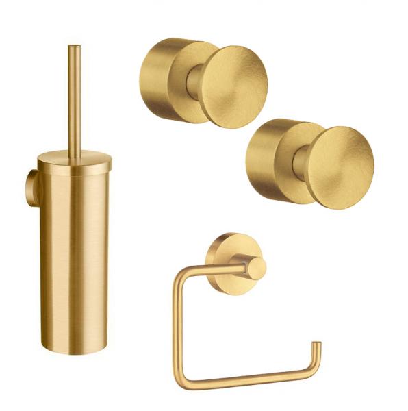 Smedbo Home tilbehørspakke til bad - Børstet messing OBS: Varen er på lager - både til afhentning og dag-til-dag levering. Klassisk, men moderne tilbehørspakke fra Smedbo Home i børstet messing.