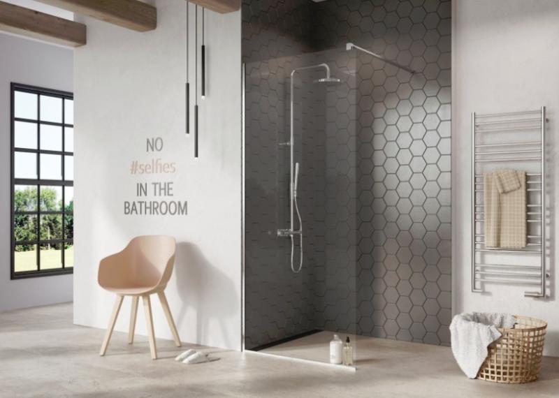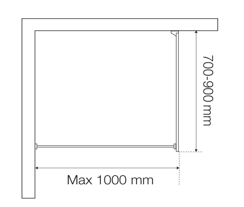 Strømberg Font Walk-in bruseafskærmning 700mm fast væg m/100cm stang, frostet glas
