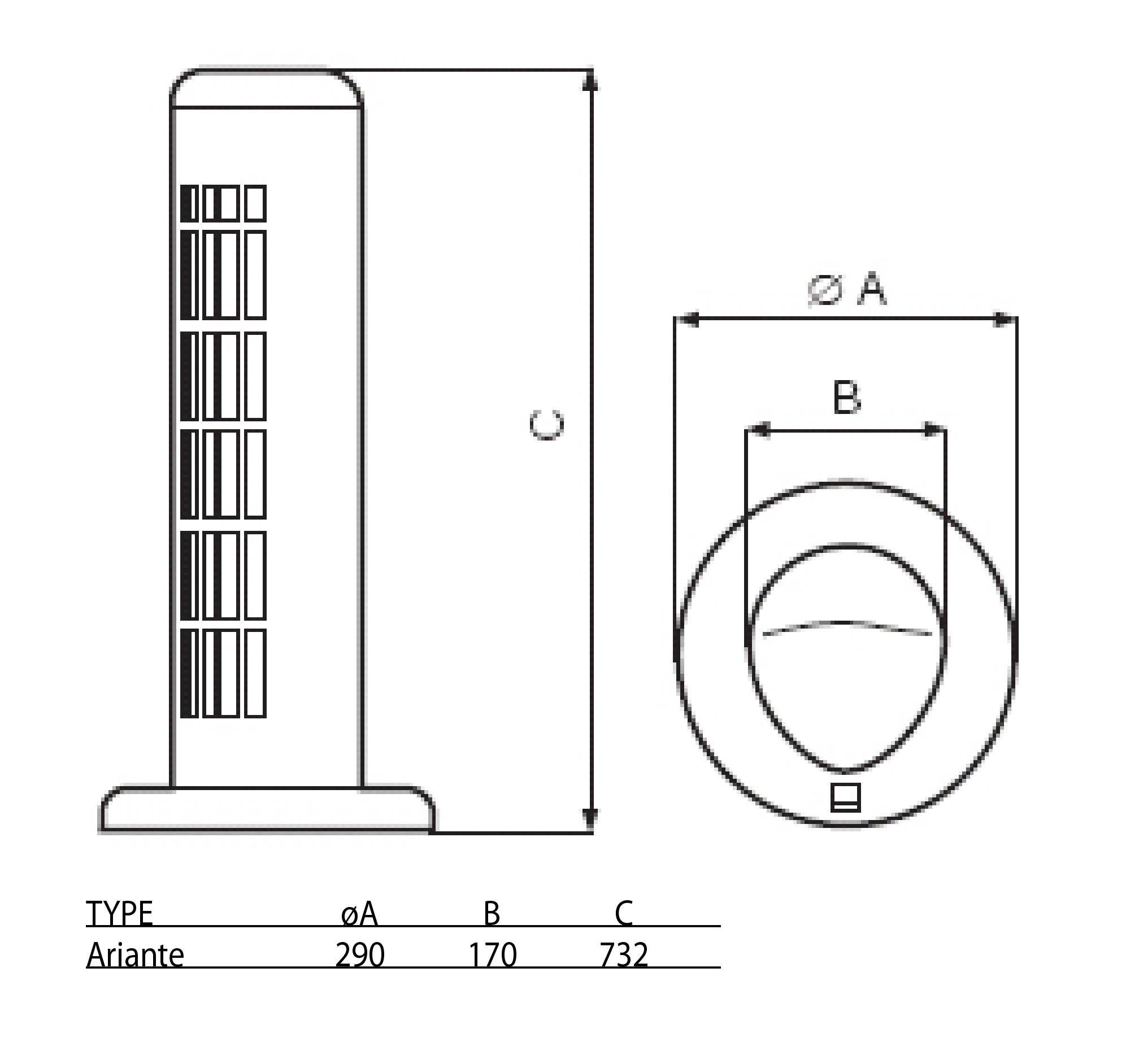 Ariante Tower er især anvendelig i størrre stuer, restaurationer etc. og kan med fordel stilles i et hjørne.