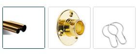Komplet 2 m forhængstang med flanger og ringe i messing fra Van Der P