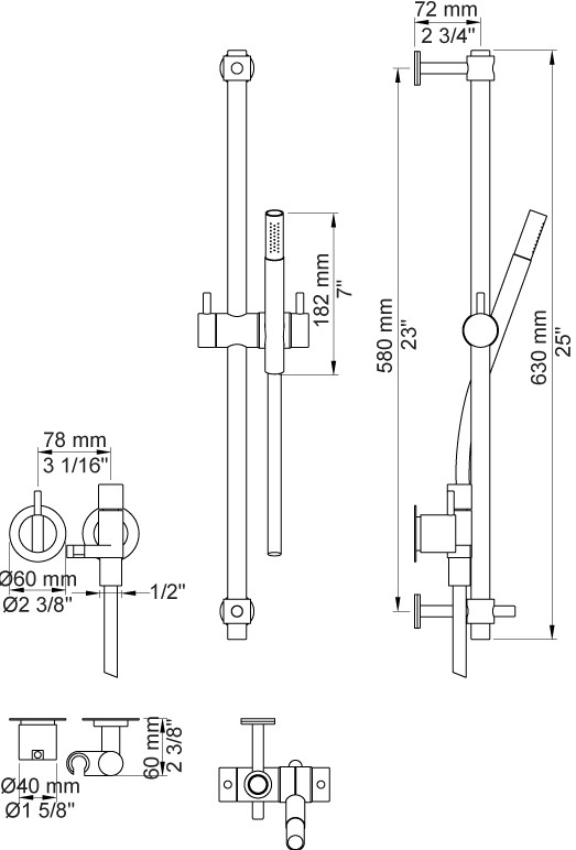 Vola 171-T34 brusearmatur med brusestang - Krom