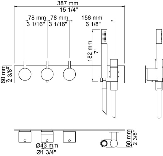 Vola 5474L-16 Brusearmatur med omskifter og håndbruser - Krom