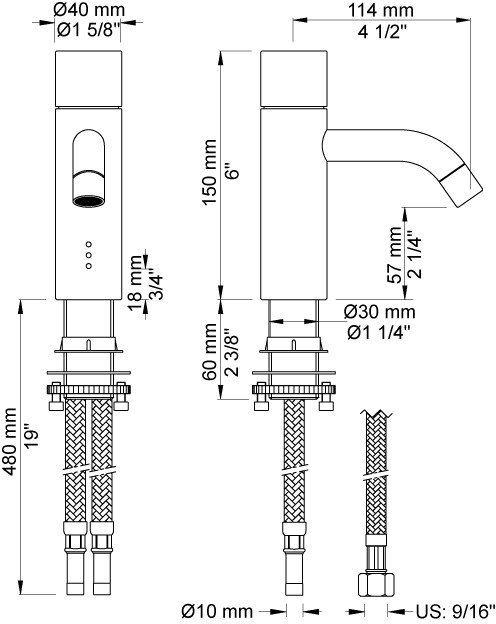 Vola HV1EN-16 Elektronisk håndvaskbatteri - Krom