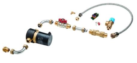 Wavin Calefa II Cirkulationssæt Anvendes med Wavin Calefa II fjernvarmeunits i tilfælde af, at varmtvandssystemet ikke imødekommer brugerens krav til komforten på det varme vand. Cirkulationssættet kan eftermonteres, hvis ventetiden på varmt vand ved tapstedet medfører gener eller uønsket vandspild. Sættet leveres med pumpe. Når sættet er installeret, kan styringen indstilles således, at cirkulationspumpen kun er i drift, når brugeren normalt er hjemme. Derved reduceres udgifter til pumpens strømforbrug markant. BEMÆRK: For at anvende cirkulationssættet skal varmtvandsinstallationen være forberedt med en cirkulationsledning til tapstedet. |